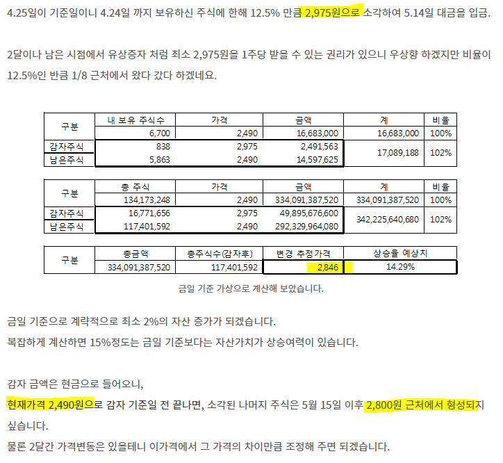 그리고 유증 가격이 2,200원 이었지만, 권리락을 포함한 신주인수권의 가격을 포함하면