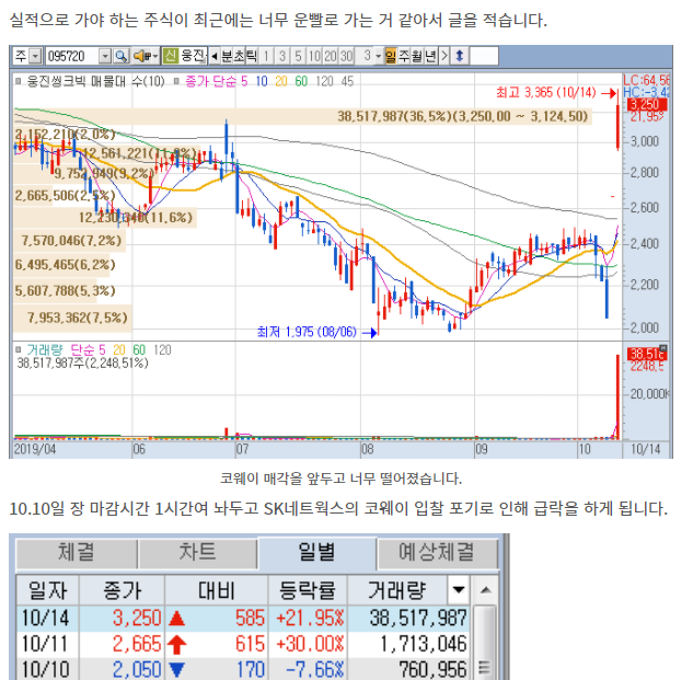 2019.10.14 - [재테크/국내 주식] - 8. 기사 하나에 -60% 웅진씽크빅