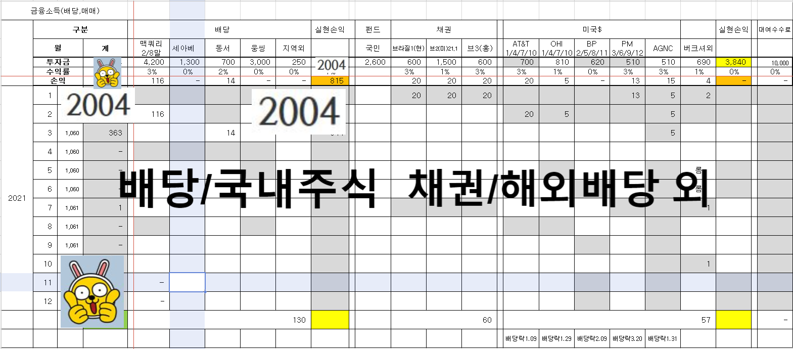 매년 월별로 그 달에 매출[배당+실현손익]을 기록합니다.