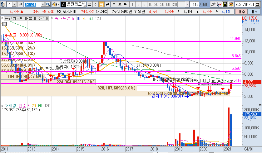 금일의 종목 또한 저의 아들과 함께한 웅진씽크빅입니다.