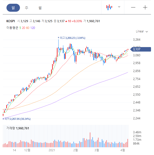 최근 다시 코스피가 전고점으로 가고 있습니다.