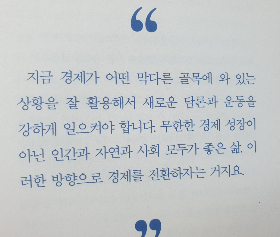 무한한 경제 성장이 아닌 인간과 자연과 사회 모두자 좋은 삶.
