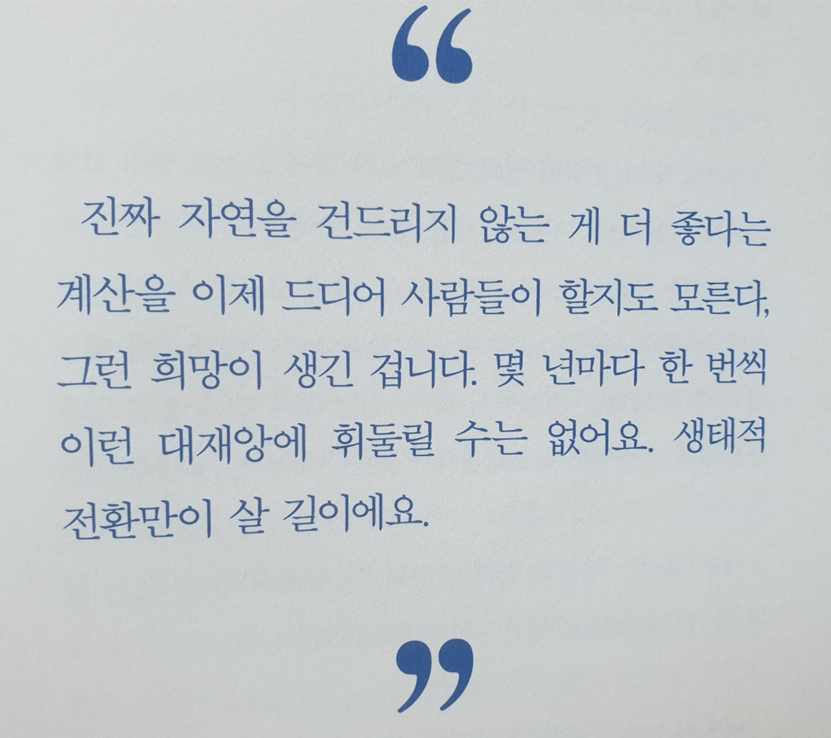 생태적 전환만이 살 길이에요.