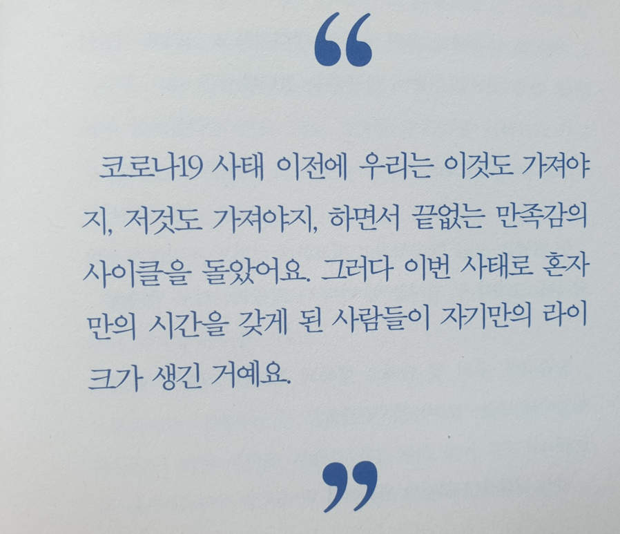 이번 사태로 혼자 만의 시간을 갖게 된 사람들이 자기만의 라이크가 생긴 거예요.