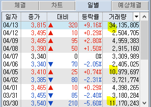그래도 한 3년간 매매 추이를 본 저로서는 3,800원 미만으로 안전하다고 판단한 기준을 가지고 매매에 임하였습니다.