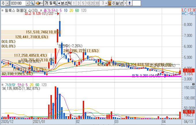필룩스는 모베이스전자, 웅진씽크빅 처럼 많이 언급한 종목으로 저에게는 소소한 수익을 주고 있습니다.