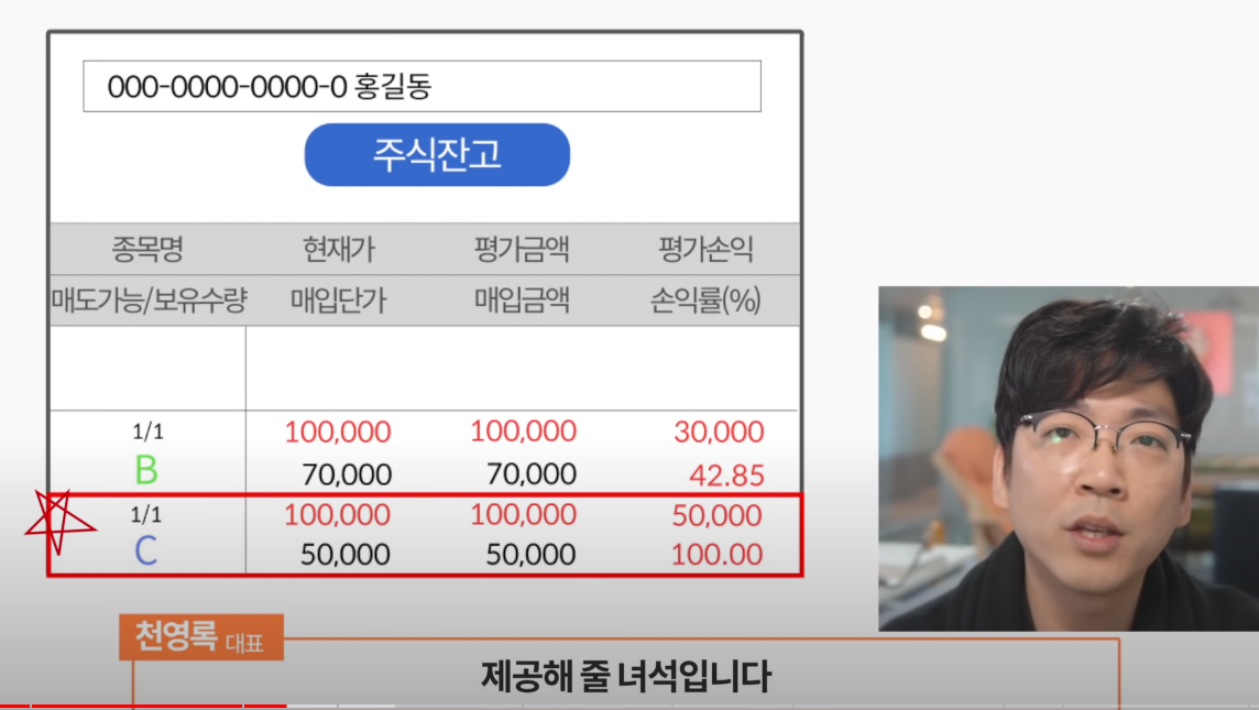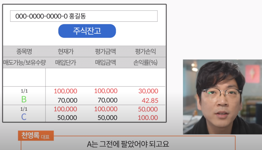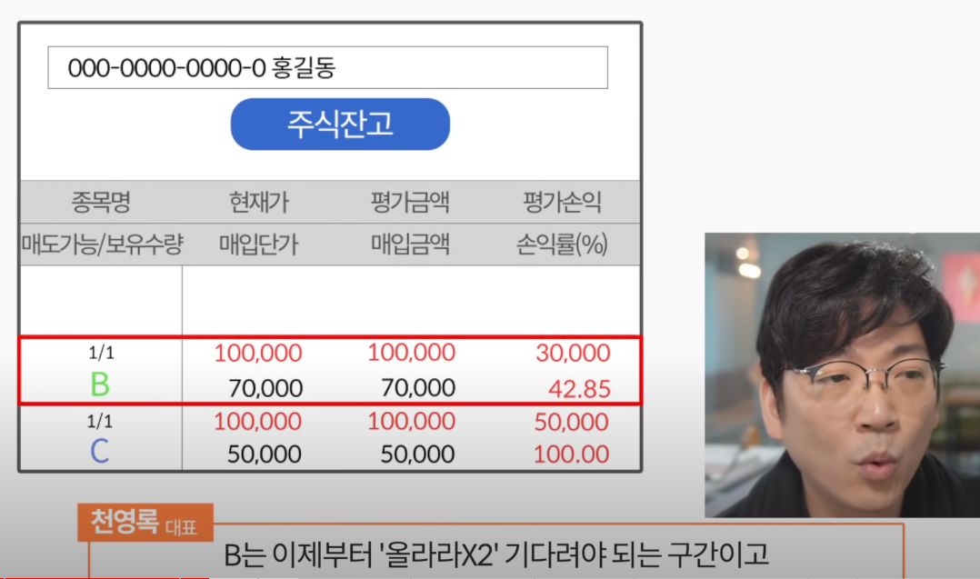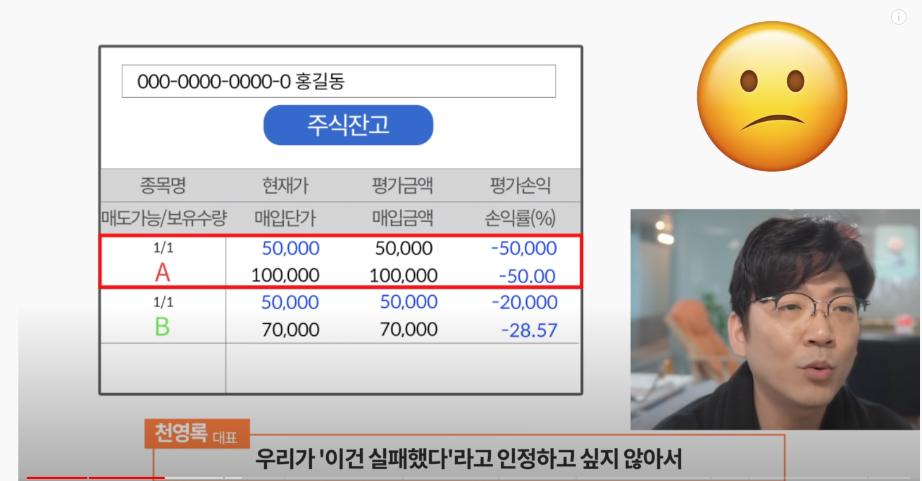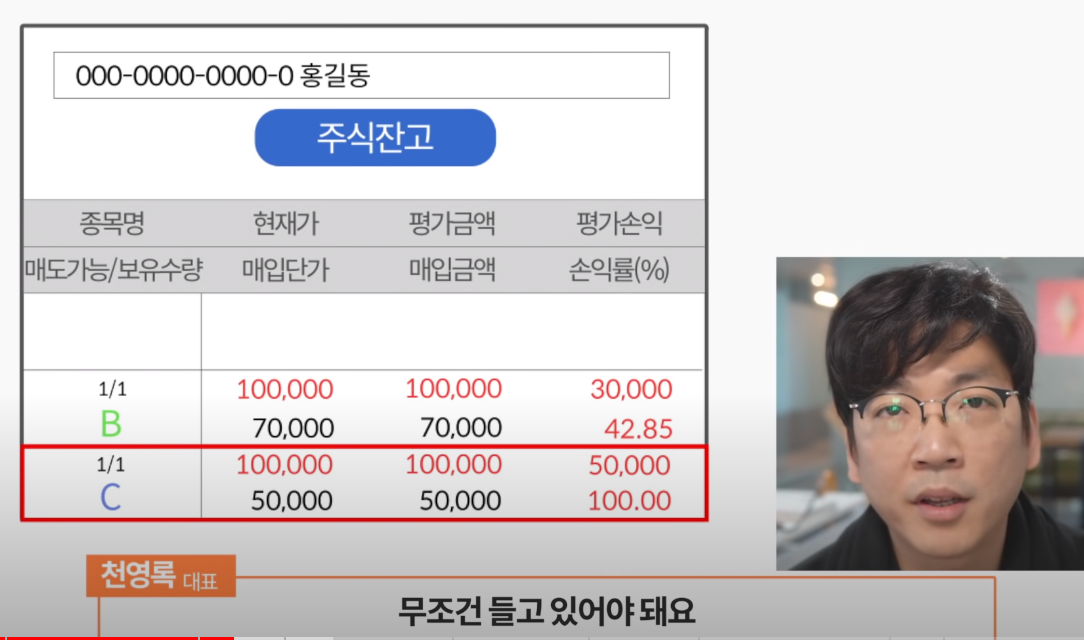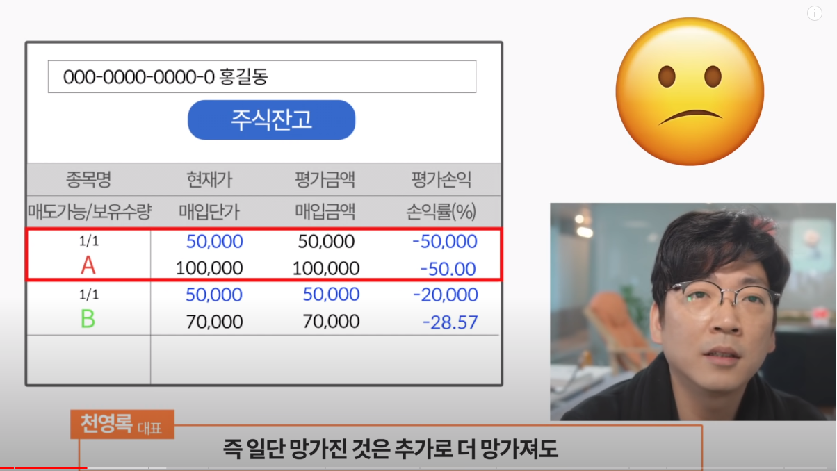 뒤에 보면 계좌를 손절해서 다시 사라고 하시는데,