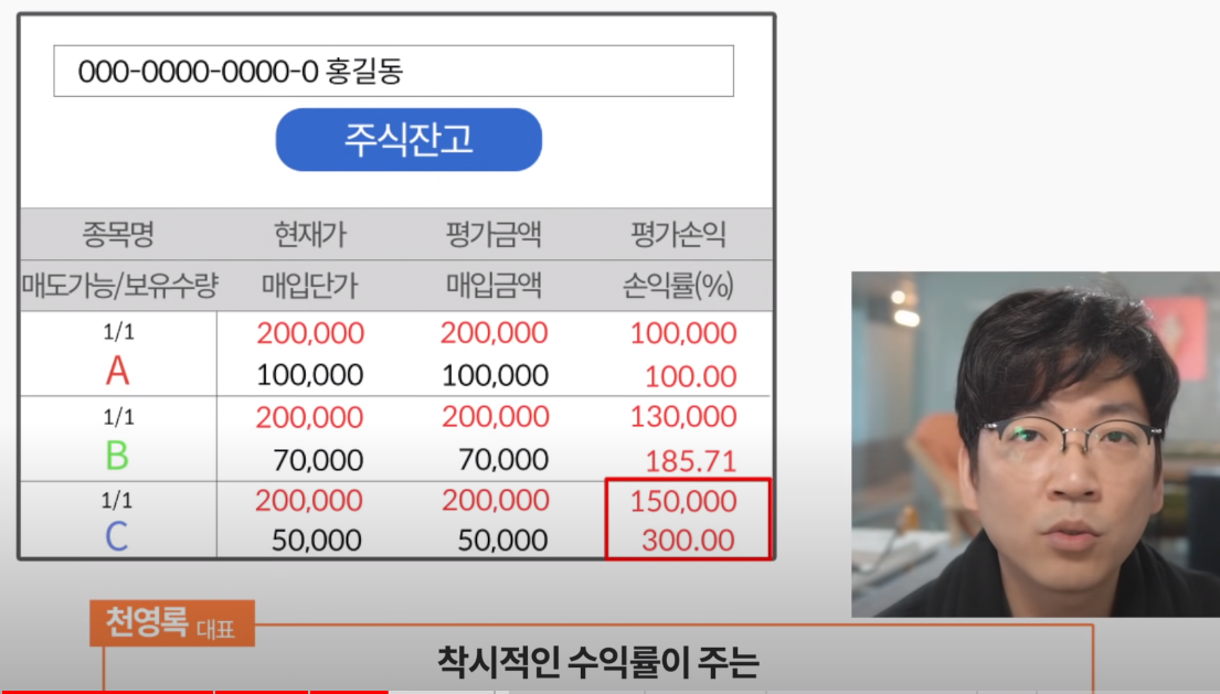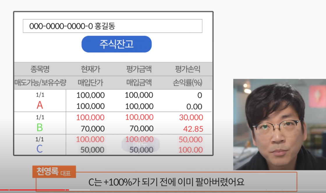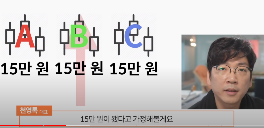 반대로 A, B, C 종목을 10만 원 , 7만 원, 5만 원 했을 때
