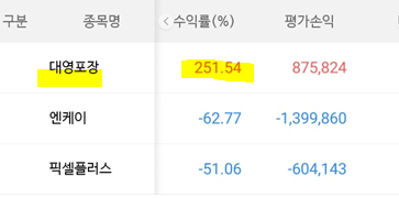 확실히 잊고 있던 종목이 100%가 넘으니 잘 가긴 하네요.