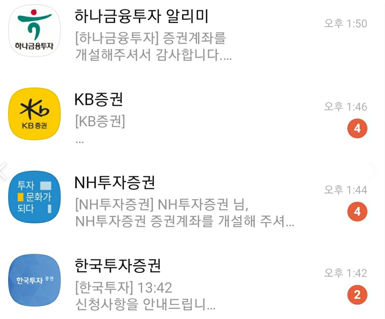 KB은행 - SK증권, 한국투자증권, NH투자증권, KB증권, 키움증권, 하나금융투자 [추후 공모주 청약에 이용]