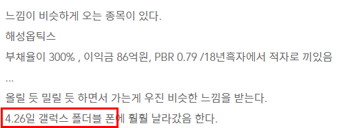 처음 블로그에 해성옵틱스 분석글을 찾아보았습니다.
