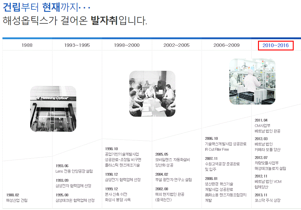 해성옵틱스는 모바일용 렌즈모듈, AF Actuator(VCM), 카메라모듈을 생산을 하는 기업입니다.