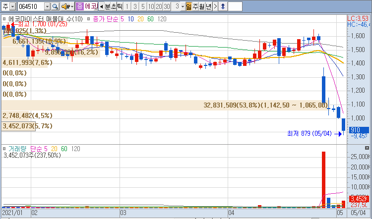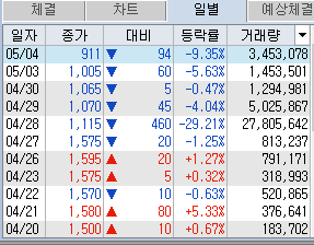 정말 상장폐지 가는 종목 아니고서야 이 정도의 하락은 잘 보기 힘든 것인데,