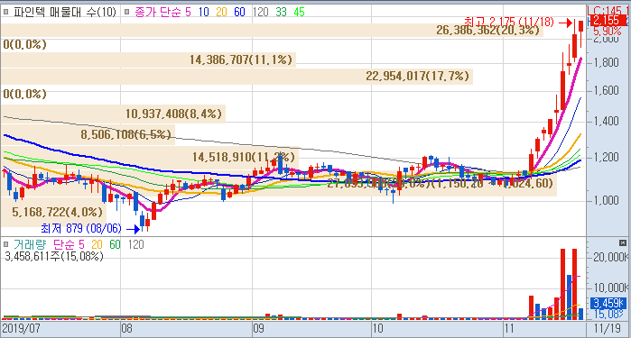 파인텍은 대규모 유상증자를 하면서 대주주가 불참을 해서 한참을 하락했던 종목입니다. 며칠 전 대표이사 국무총리상 수상으로 깜짝 반등을 하더니, 금일은 드디어 흑자로 영업이익 발생하였다는 기사와 함께..
