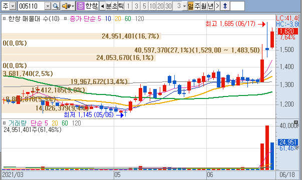 금일도 이슈는 고점인 줄 알지만 끝도 없이 올라가는 카카오, 작년에 제게 기쁨을 준 진원생명과학, 그리고 대북주 일신석재, 아난티, 한창, 남광토건 이 움직였습니다.