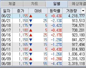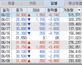 최근 급등락세를 보여줬던 정다운을 다 정리했네요.