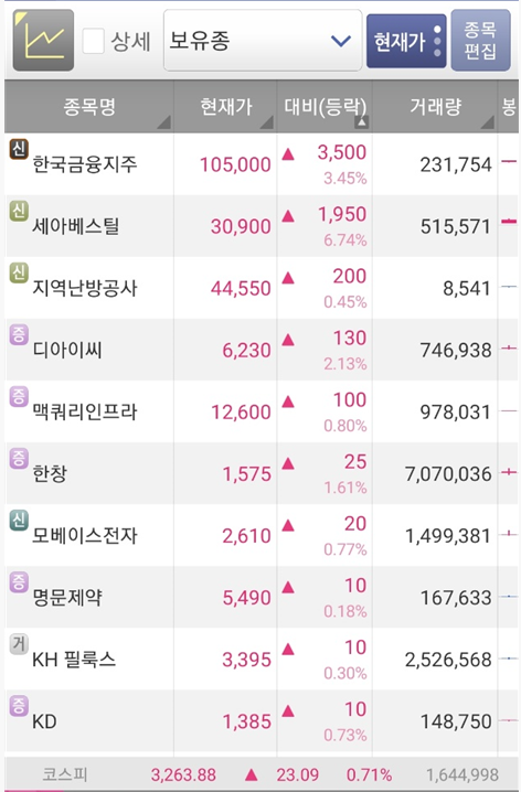 어제 그렇게 파랬던 종목이 언제 그랬냐는 듯 발갛게 타오르고 있습니다.