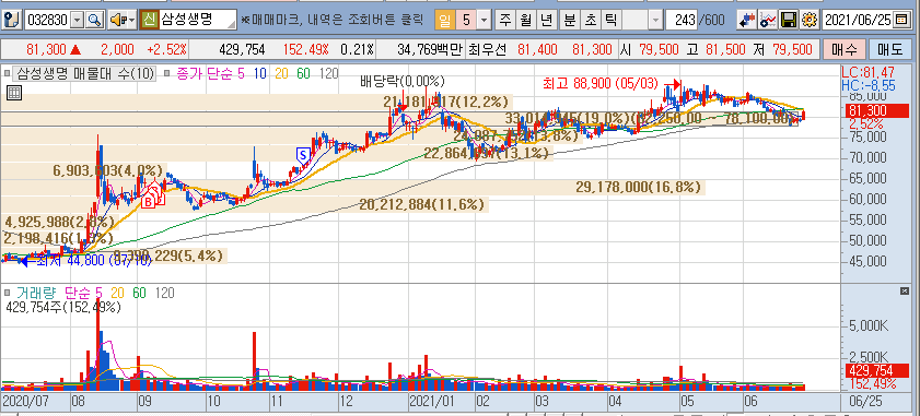 저는 대형주는 잘하질 않는데, 그나마 금일 가지고 있는 종목 중에는 한국금융지주, 삼성생명의 반격이 좋아 보입니다.