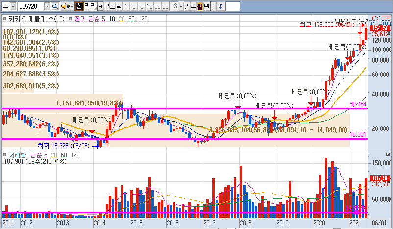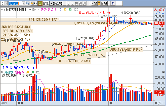 그래도 10년간 10~15만 원대를 유지하다 코로나19 한방에 5배가 오른다는 것은, 구멍가게도 아니고 너무 거품인 듯합니다.