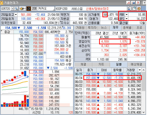 물론 저도 카카오 좋아는 하지만 너무 고가라 그냥 지나간 버스로 바라만 보내요.