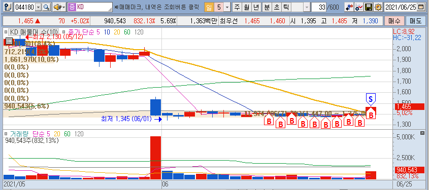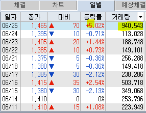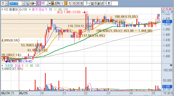 1,470원 이하에서는 매수를 하기 쉬웠으니, 금일의 급등은 아주 편한 매매를 하게 했네요.