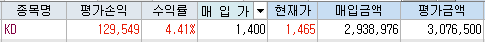 KD는 에이디칩스 처럼 과거에 한번 유증으로 수익을 낸 종목이라서 좋지 않은 기업임에 투자를 결정했습니다.
