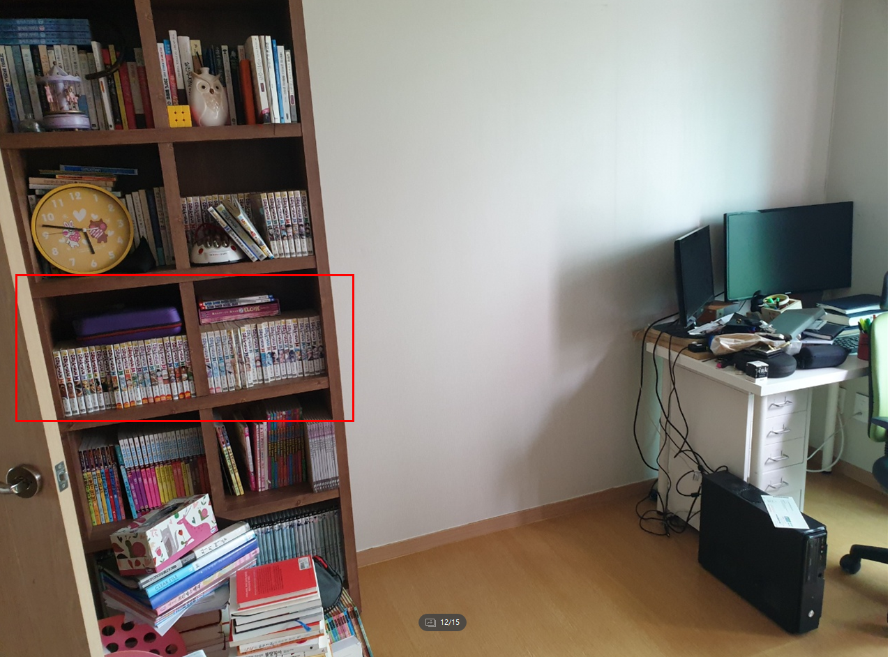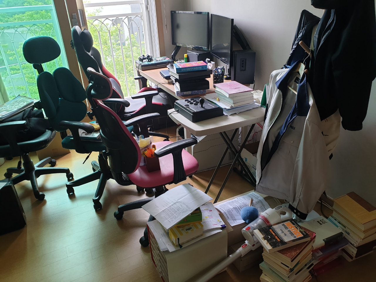 기존 양방향 컴퓨터에서 일방향 컴퓨터로 공간의 활용도를 넓히기 위해 책장을 걷어냈네요.