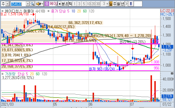 21.7.22일 현재 가격이 1,175원임에도