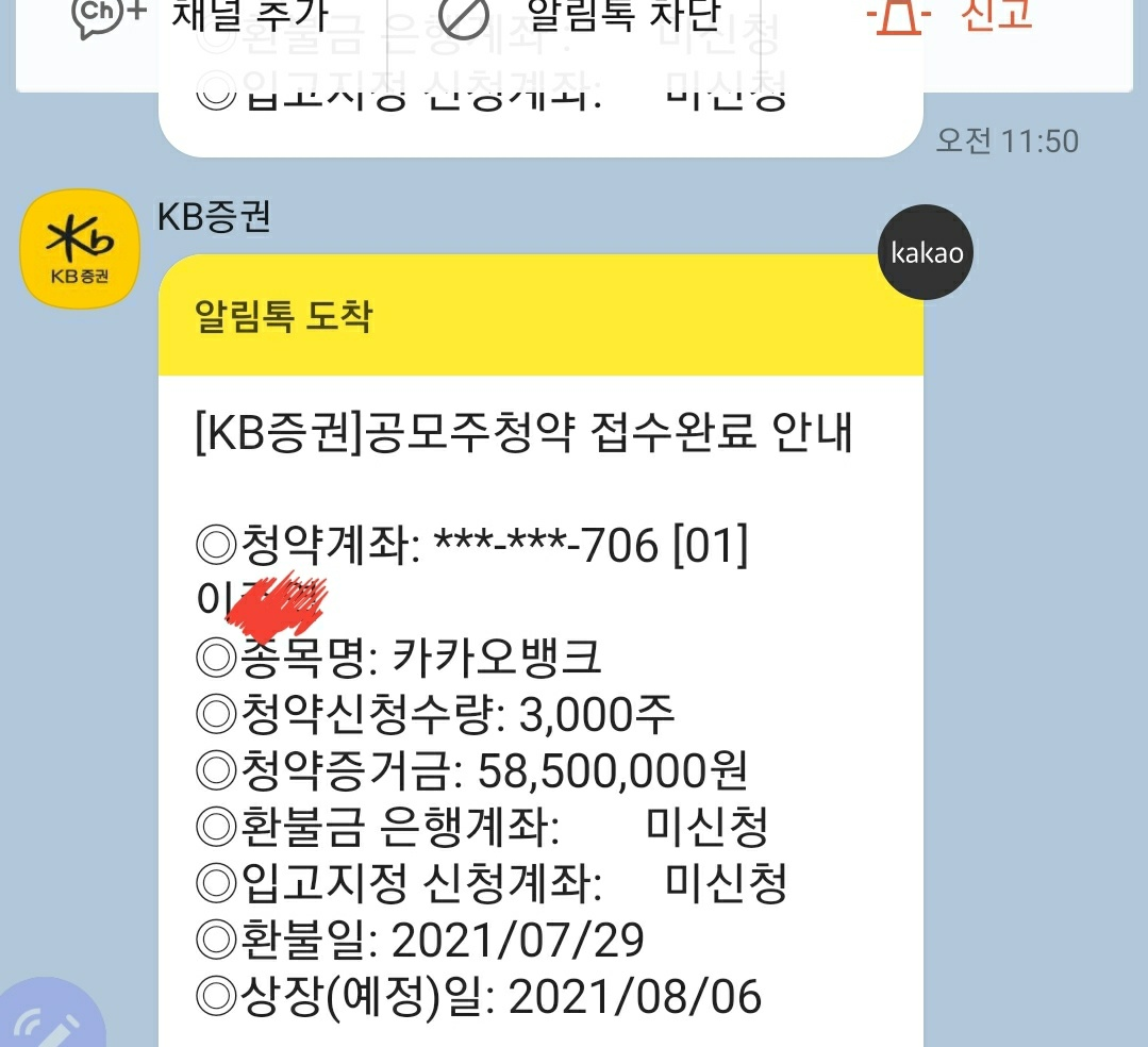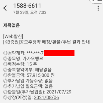 저는 KB증권 계좌로 카카오뱅크 3,000주 청약했습니다.