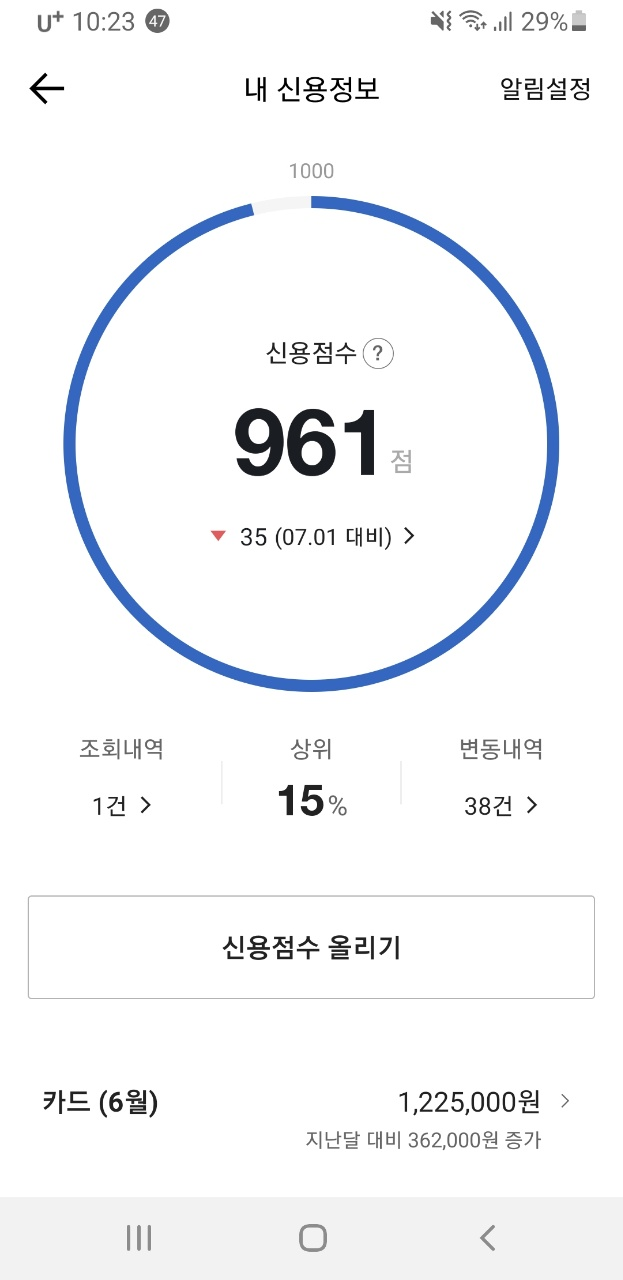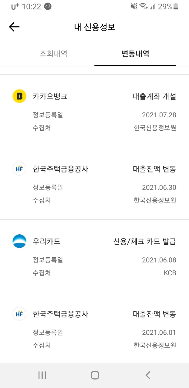 처음 신용대출이라 조회를 좀 하고, 최근 신용카드 맞추었는지