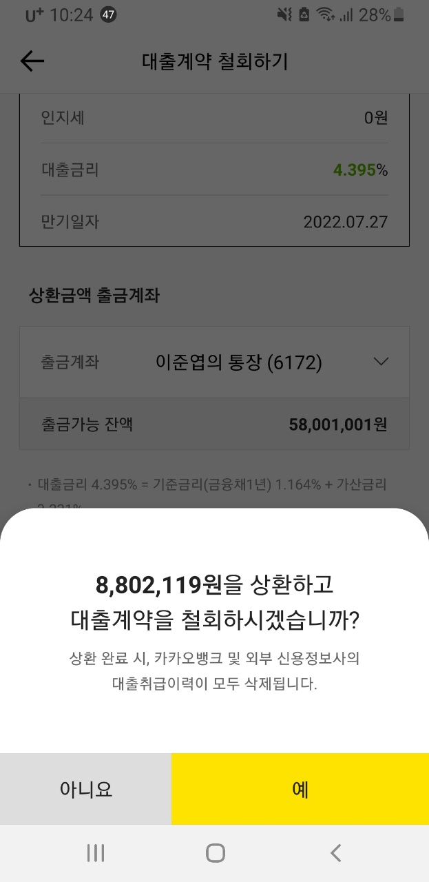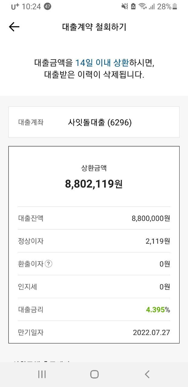 그리고는 재빠르게 대출을 상환하시면 됩니다.
