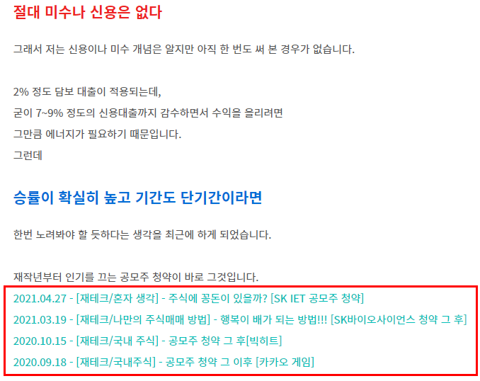 그래도 공모주 정도는 최소한의 수익이 보장이 되어 있기에 약간은 무리하게 해 보는 것입니다.