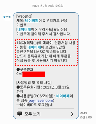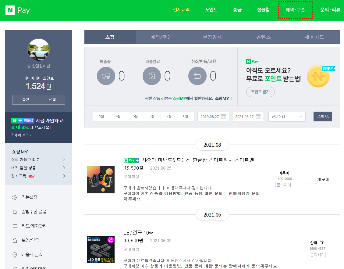 네이버 페이에서 혜택 쿠폰 링크를 클릭하면