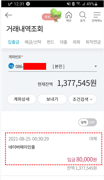 네이버 페이에 8만원 포인트가 적립됩니다.