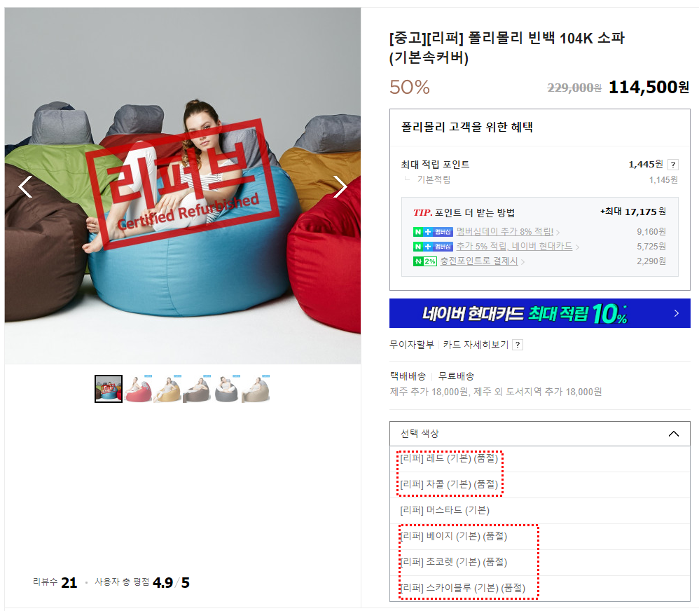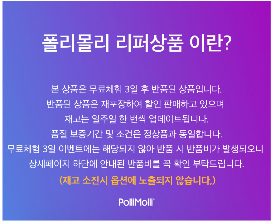 그러던 중 폴리몰리 사이트에서 무료체험 3일후 반품된 상품을 싸게 구매할 수 있다는 것을 보았네요.