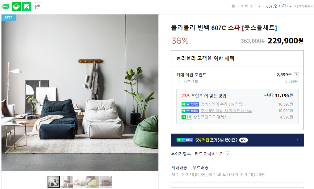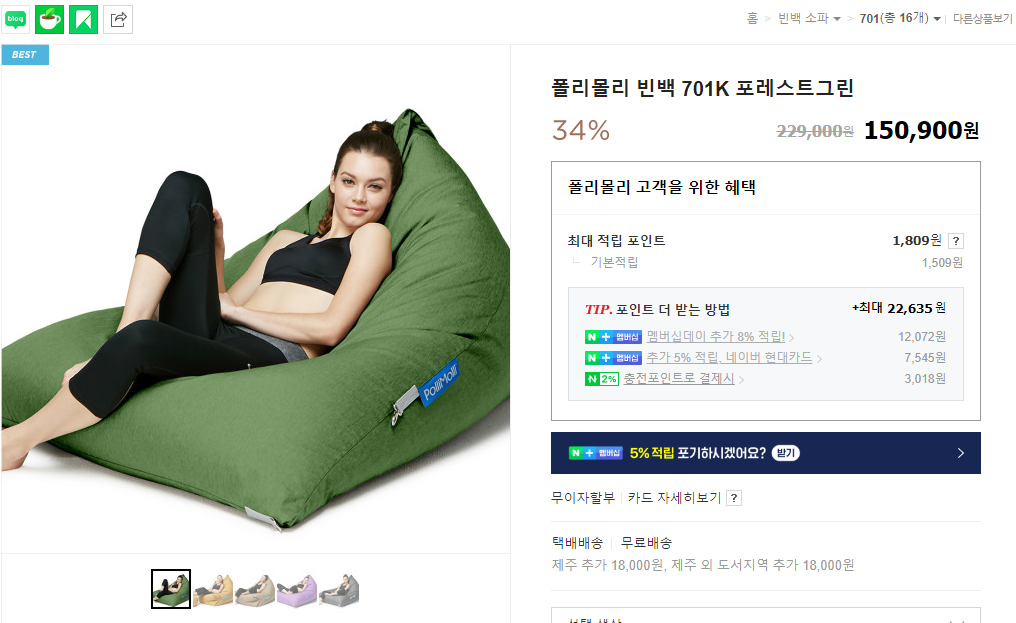 지금이야 알라딘, yes24 매장등을 보면 야외나 실내에 놓여진 폴리몰리 빈백 701K 모델을 자주 볼 수 있습니다.