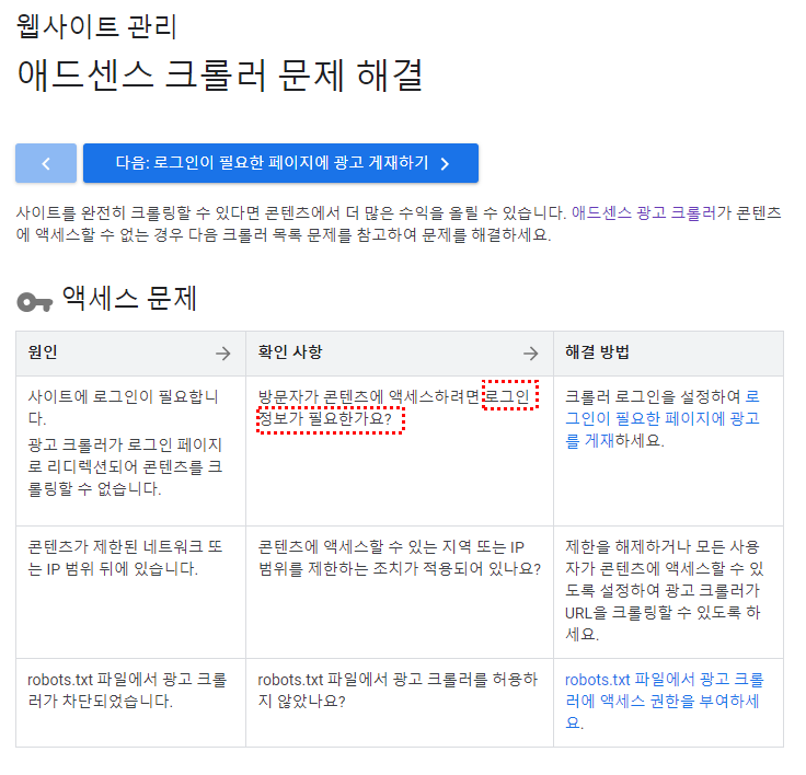 그래도 신경안쓸려다 계속 반복되지 싶어서 일단 페이지 문제를 하나하나 에드센스 글로 대입해서 정리해 볼 생각입니다.