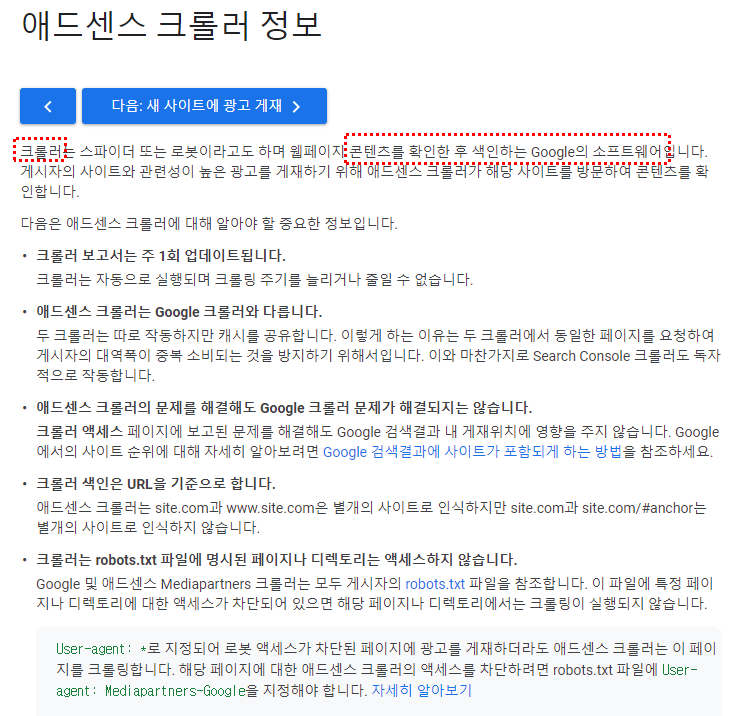 일단 한국말로 되어있지만 로봇이 주1회 검색을 하고, 에드센스 로봇과 구글 색인 로봇은 다르다.