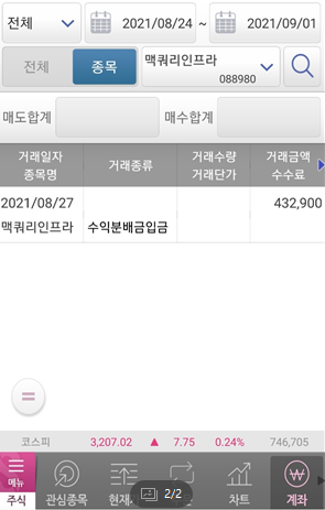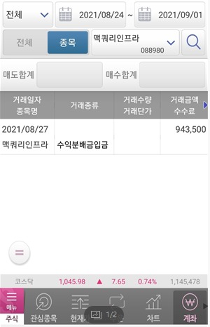 전에 수익이 나는 수익금으로 일부는 꼭 맥쿼리에 재투자를 한다는 생각을 합니다.
