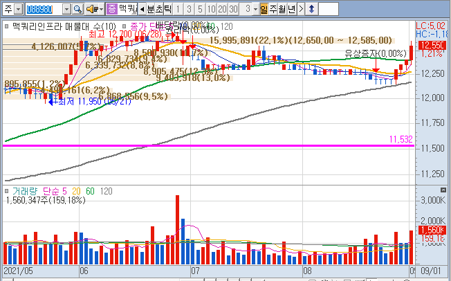맥쿼리인프라펀드 배당 금일 기준 5.5% [년]
