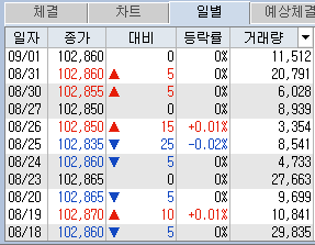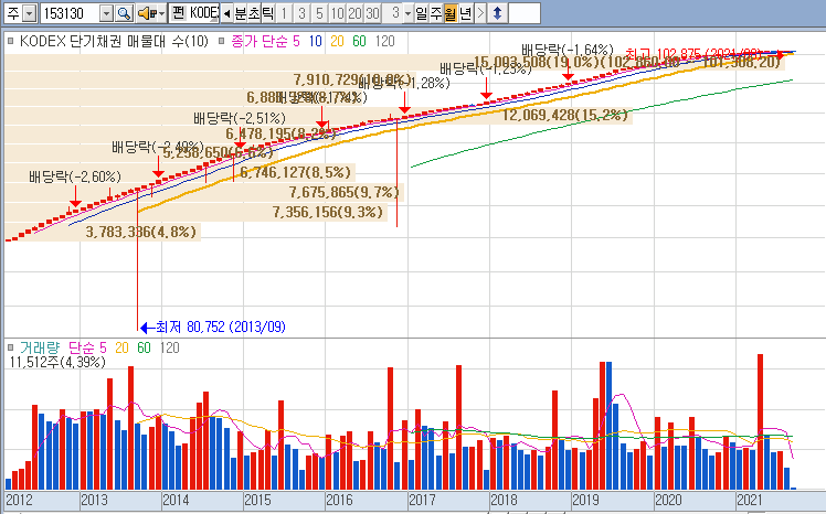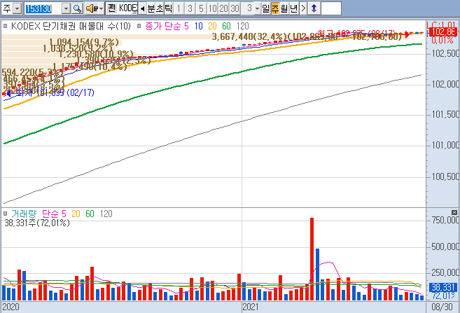 등락률 폭이 CMA, 채권처럼 0%, 0.4%가 최대폭인지라, 거의 신경 쓸 필요가 없고, 그래서 급등장에서는 소외가 되기도 하지만 하락장에서는 또 안전한 대비처가 되기도 합니다.