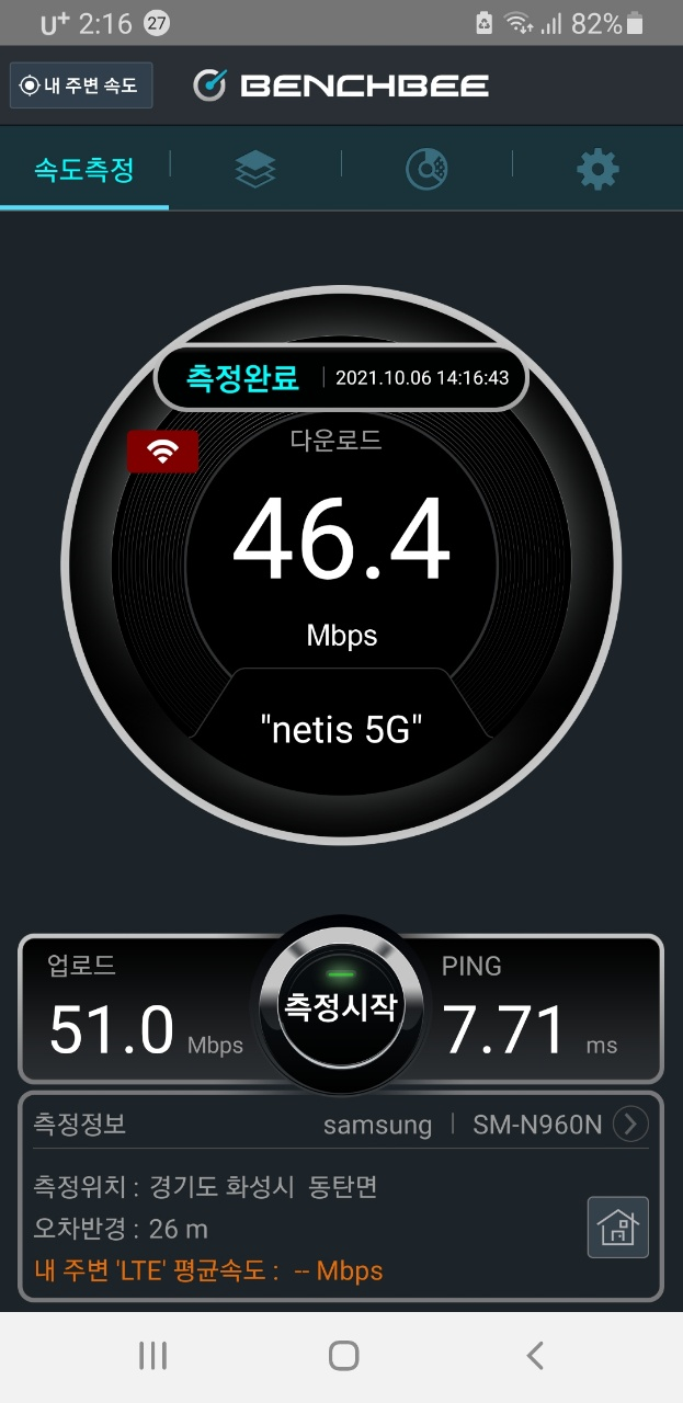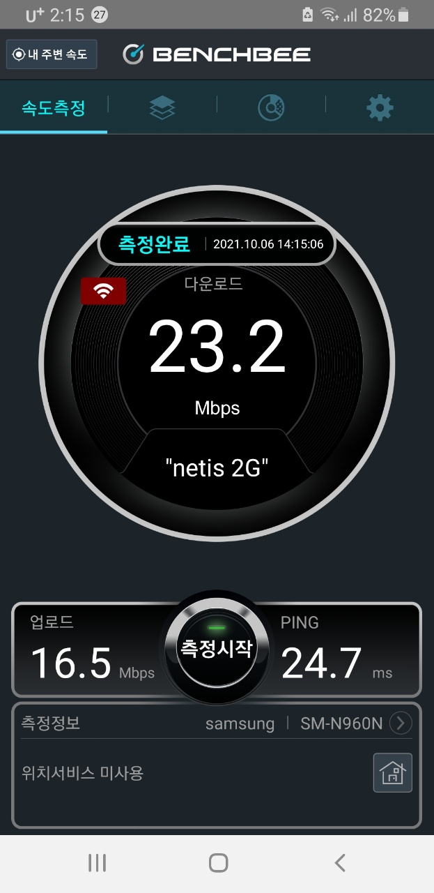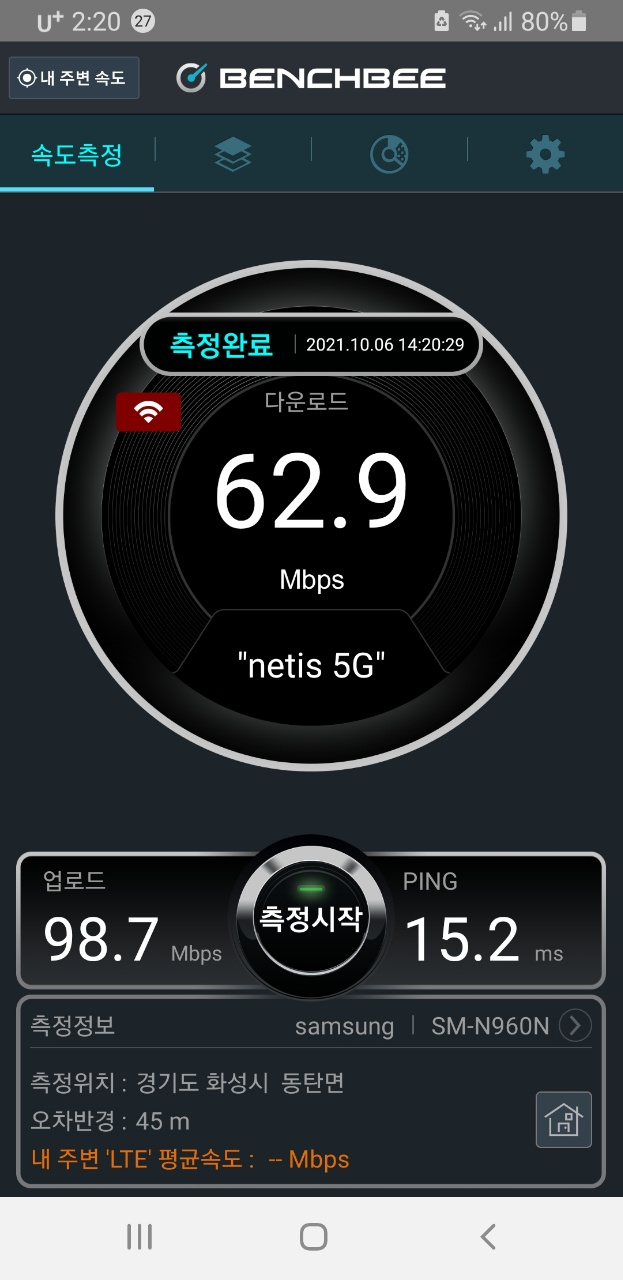 네티스 5g 63메가에서 -> 아이피타임 5g 200~300메가로 속도가 향상되었습니다.