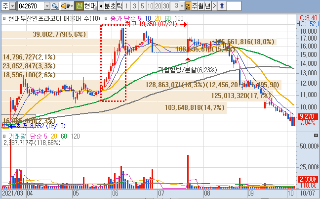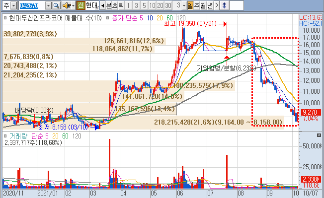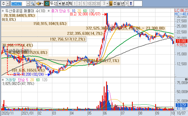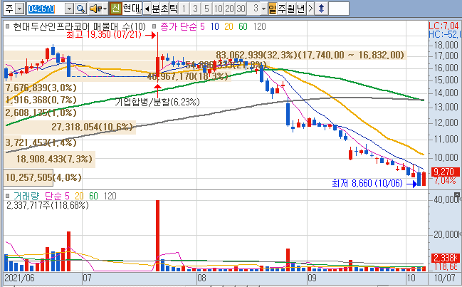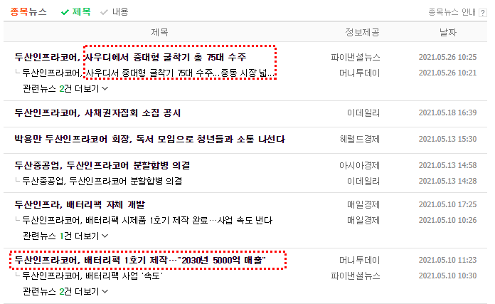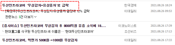 5월 배터리팩 기사로 상향하더니 두산중공업과 두산인프라코어 가 분할합병 공시가 뜨더니,