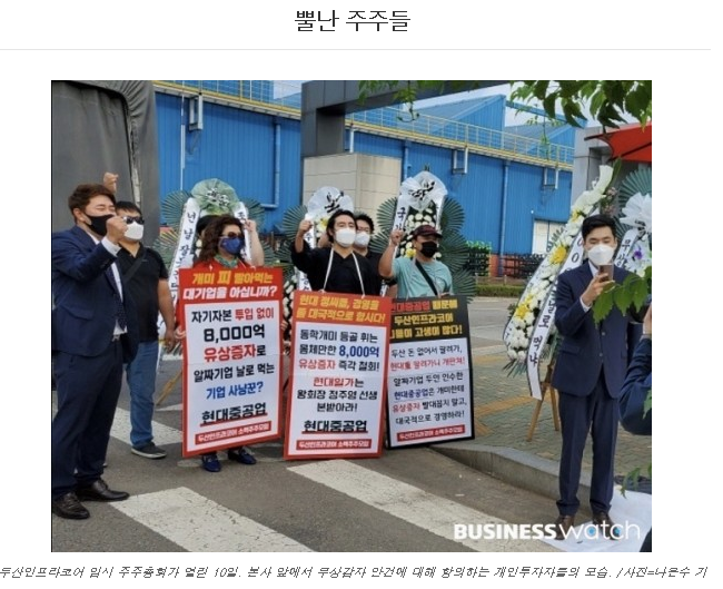 현대중공업이라는 뿔난 주주 모습이 보입니다.