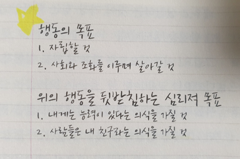 자기 수용이란 '하지 못하는 나'를 있는 그대로 받아들이고, 할 수 있을 때까지 앞으로 나아가는 걸세.
