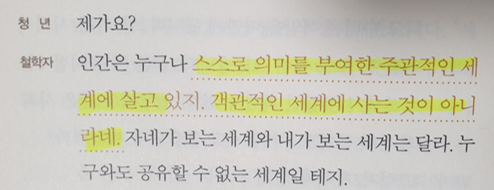 스스로 의미를 부여한 주관적인 세계에 살고 있지. 객관적인 세계에 사는 것이 아니라네.
