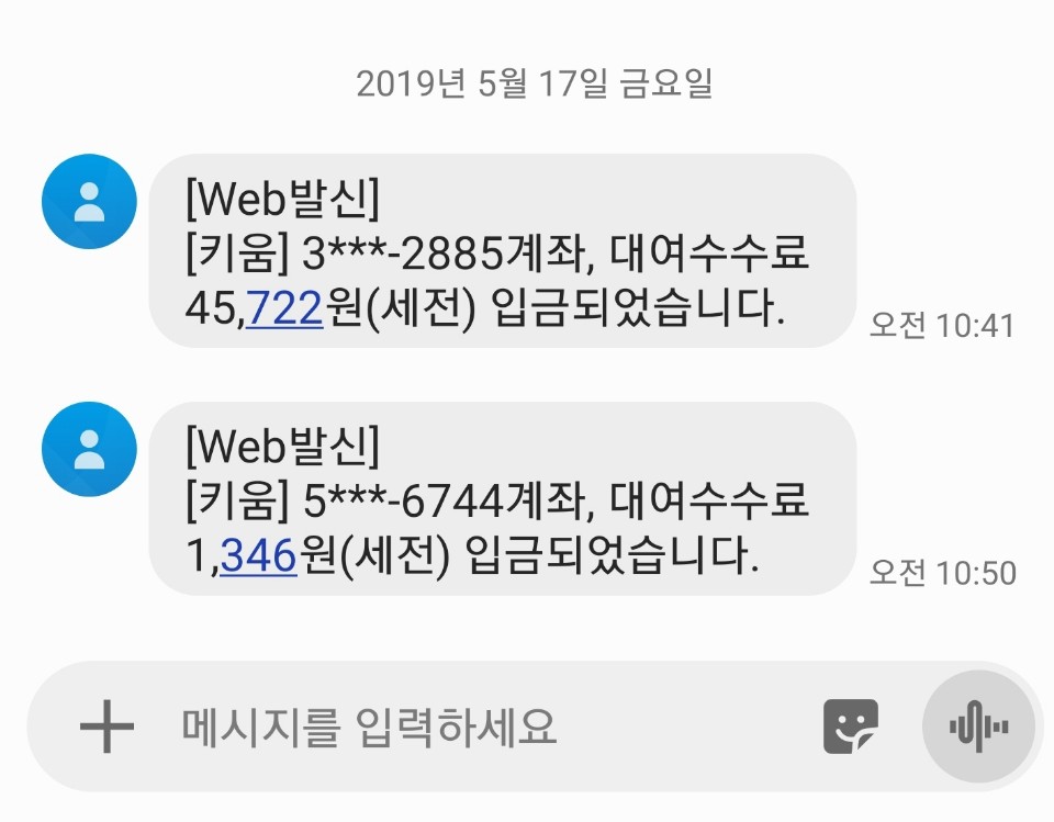 소액이었을 때는 뭐 한 달에 만원 정도는 입금되는 거 같아서 애들 용돈이나 준다는 개념으로 했던 거 같습니다.