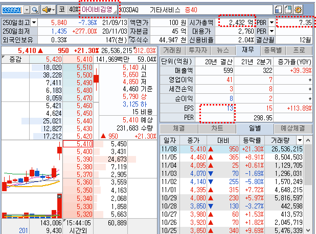 금일 아이비김영을 대장주로 온라인 교육주들의 기세가 드세네요.