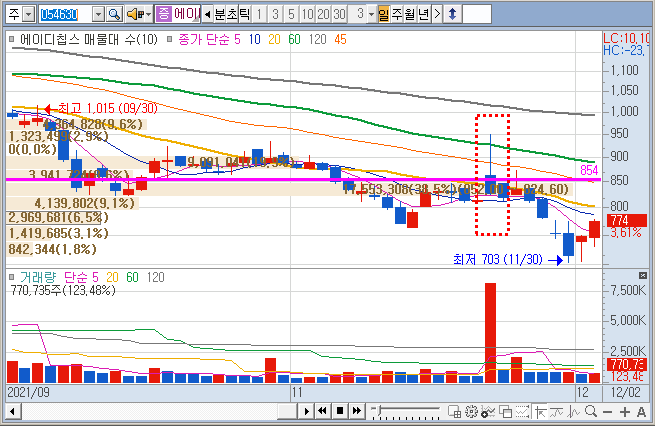 평단 855원 단기적으로 낙폭 과대로 모앗었는데,