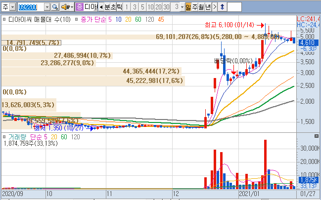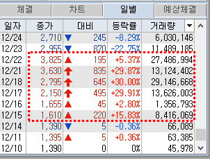 가격이 꽤 높아서 저런 상한가의 흐름을 만들기는 어려워 보입니다.